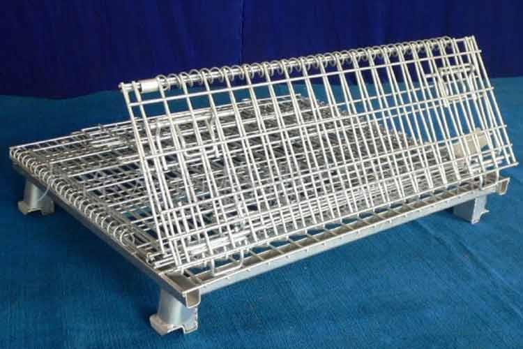 可折疊蝴蝶籠的主要原材料是高線拉成的鋼絲,一般絲徑是5mm,6mm,6.4mm。網(wǎng)片焊接的網(wǎng)目間距一般為50×100,100×100,50×50。折疊式倉庫籠采用U型鋼焊接而成,U型鋼是冷軋帶鋼軋機軋制而成,底部四角采用沖壓件一次沖制而成。