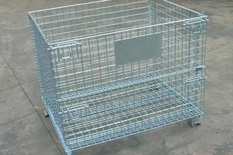 主要原材料是高線拉成的鋼絲,一般絲徑是5mm,6mm,6.4mm。網(wǎng)片焊接的網(wǎng)目間距一般為50×100,100×100,50×50。倉(cāng)儲(chǔ)籠底部采用U型鋼焊接而成,U型鋼是冷軋帶鋼軋機(jī)軋制而成,底部四角采用沖壓件一次沖制而成。鐵絲籠采用Q195高線作為原材料,經(jīng)冷拔成型材。再通過(guò)碰焊形成半成品網(wǎng)片。在制作成網(wǎng)片后,可采用鍍鋅或噴塑進(jìn)行表面處理(鐵絲籠大多數(shù)采用鍍鋅處理),表面處理完畢后就可以進(jìn)行組裝,即可制作成成品。