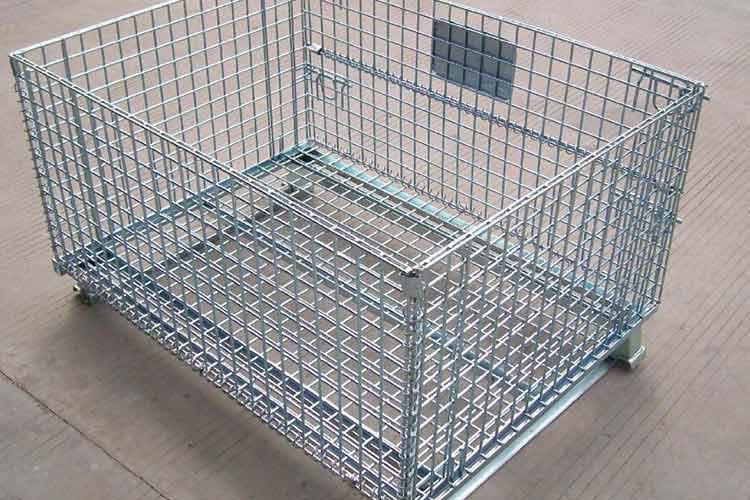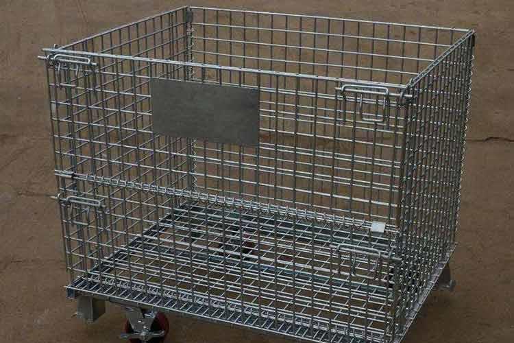 折疊式倉庫籠的主要原材料是高線拉成的鋼絲,一般絲徑是5mm,6mm,6.4mm。網(wǎng)片焊接的網(wǎng)目間距一般為50×100,100×100,50×50。折疊式倉庫籠采用U型鋼焊接而成,U型鋼是冷軋帶鋼軋機軋制而成,底部四角采用沖壓件一次沖制而成。